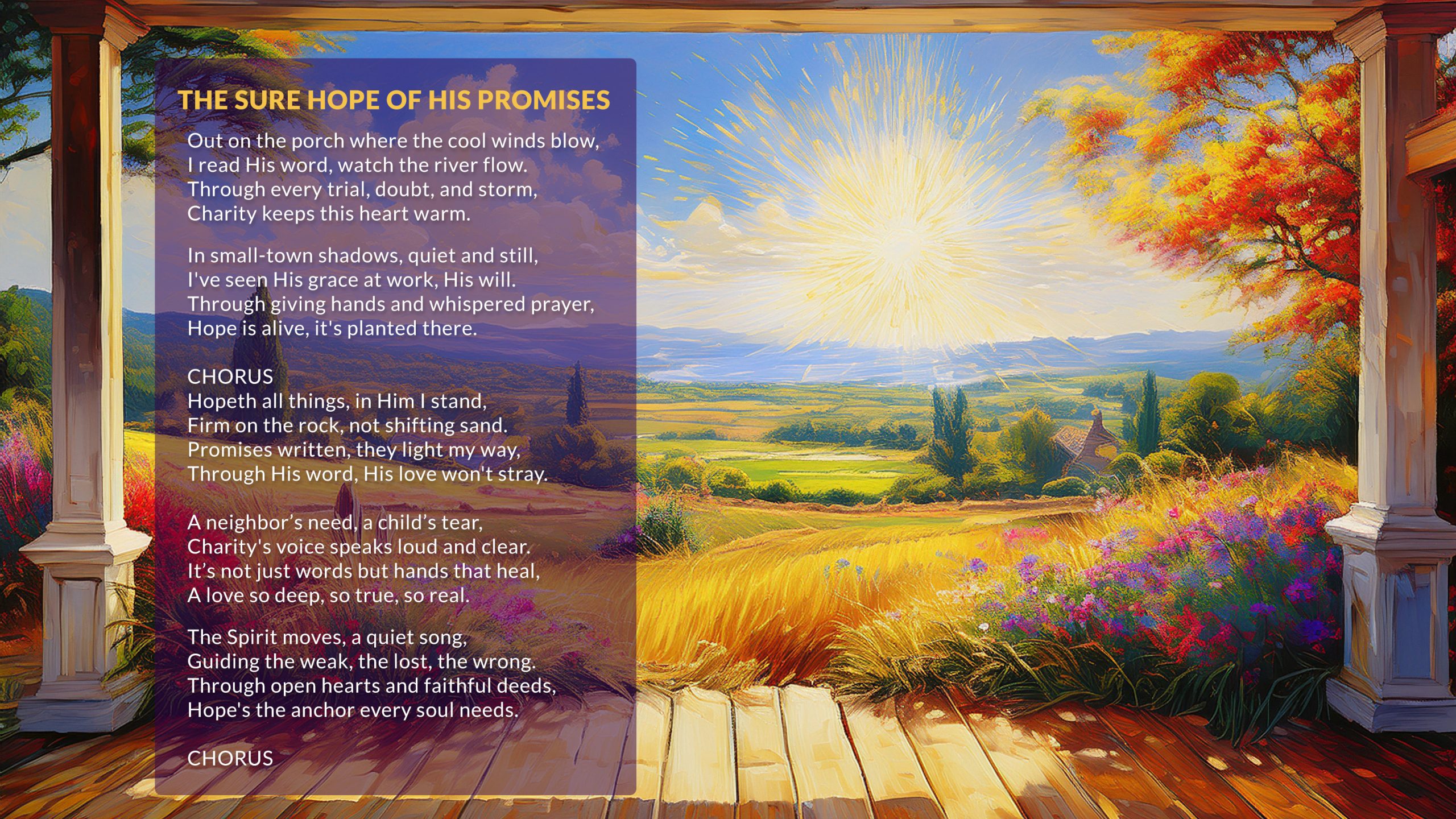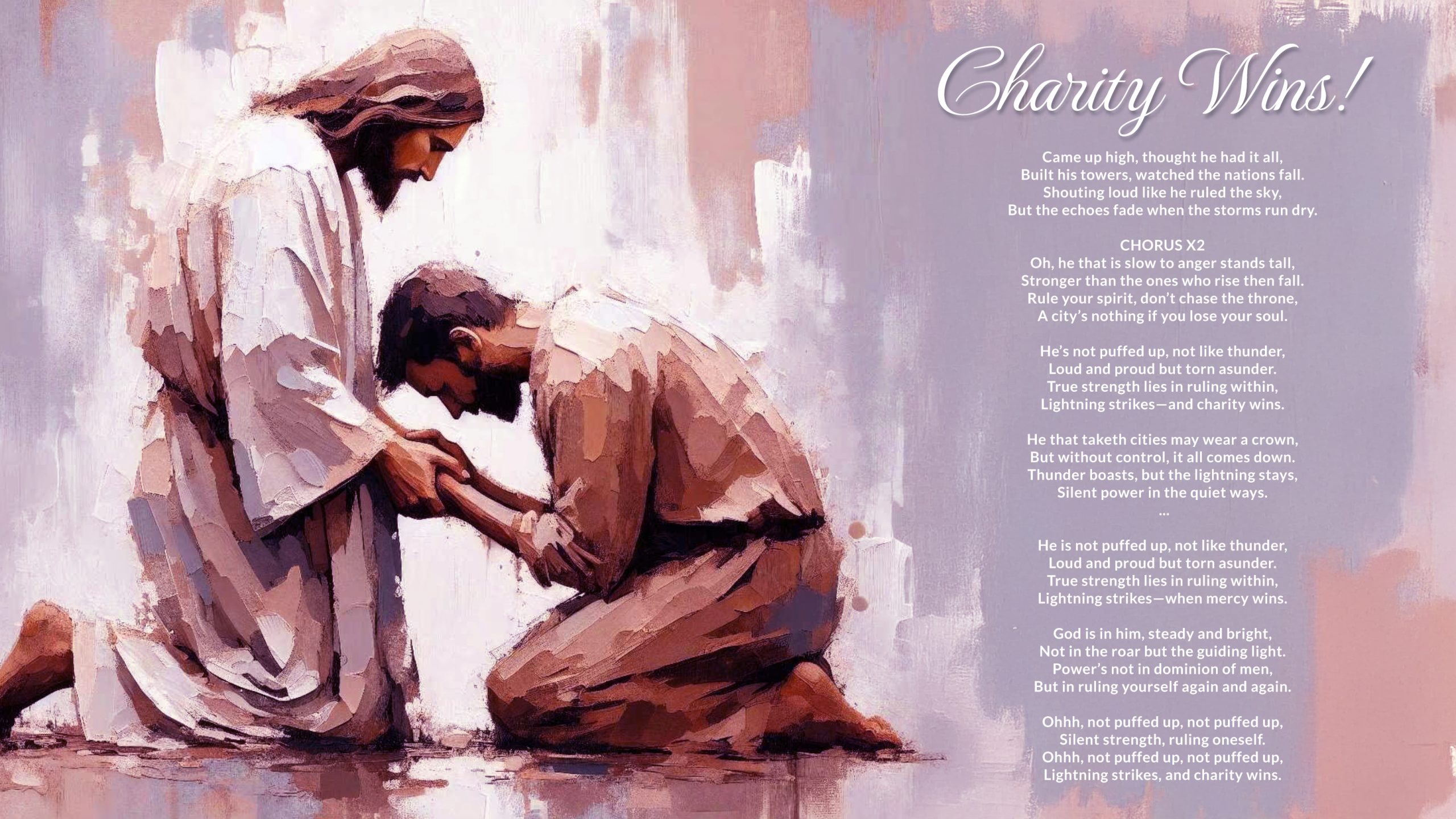 Through 10 weeks, We spent hours: (1) examining the Greek roots of Strong’s definition of these attributes; (2) developing modern parables to both illustrate and deepen our understanding of Charity; (3) exploring Jesus’ words in Red as pertaining to each attribute; and over this period of time, (4) creating songs in praise of this vibrant and new understanding.